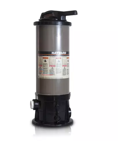 El clorador en línea C500EXP de gran capacidad de Hayward, está diseñado para proporcionar una reserva de productos químicos (ya sea cloro o bromo) en piscinas y/o spas residenciales y comerciales.